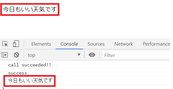 そして、コンソールと「content」のidを持つ要素に、それぞれ変数「entry」を出力しているわけです。