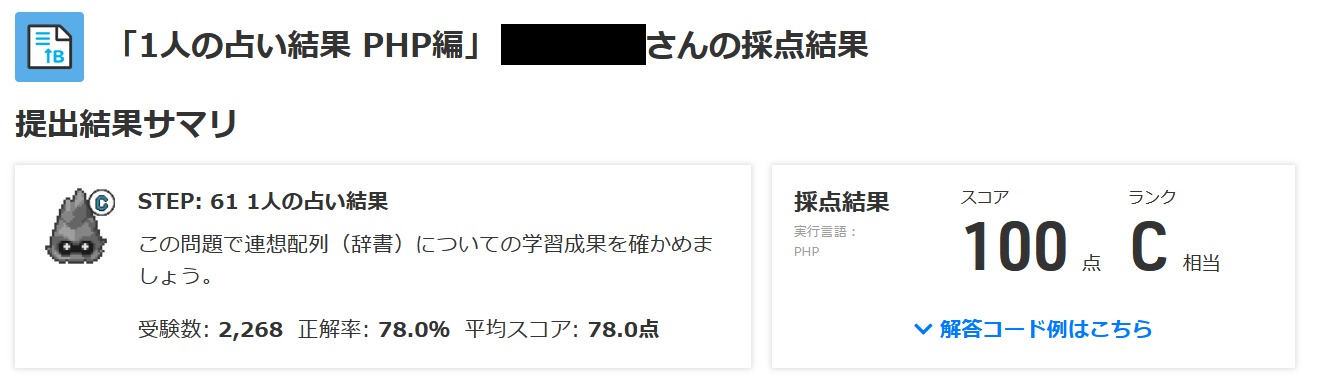 【Bランクレベルアップメニュー】 > 【占い】STEP: 5 1人の占い結果 (paizaランク C 相当)