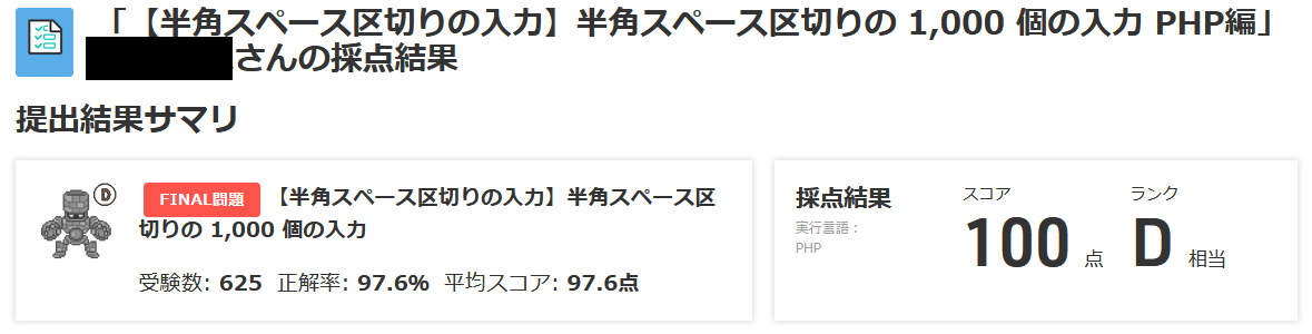 【半角スペース区切りの入力】FINAL問題 【半角スペース区切りの入力】半角スペース区切りの 1,000 個の入力 (paizaランク D 相当) – PHP編【標準入力メニュー】