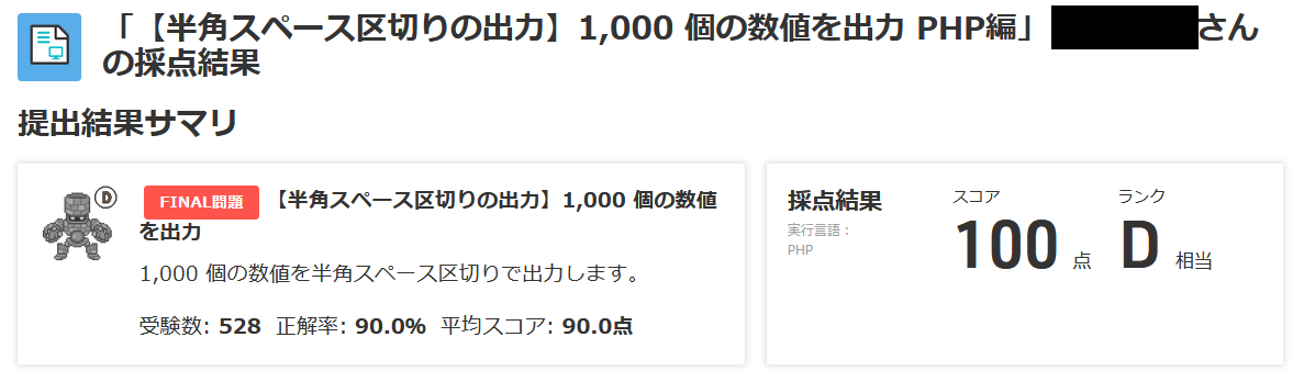 【半角スペース区切りの出力】FINAL問題 【半角スペース区切りの出力】1,000 個の数値を出力 (paizaランク D 相当) – PHP編【標準出力メニュー】