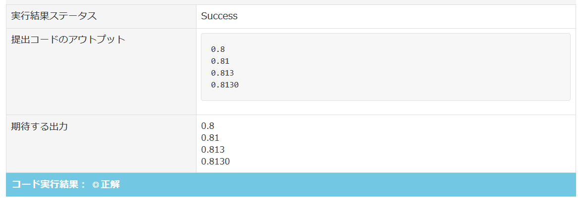 【標準出力メニュー】 > 【実数をフォーマット指定して出力】FINAL問題 【実数をフォーマット指定して出力】複数の実数を出力 (paizaランク C 相当)