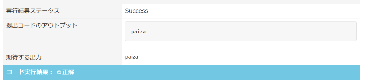 ホーム > paiza - レベルアップ問題集 【文字列処理メニュー】文字列の出力 (paizaランク D 相当) 解答例 – PHP編【paiza】 Tweet Pocket 【文字列処理メニュー】 > 文字列の出力 (paizaランク D 相当) ※リンク先へ移動する為には「paiza」へのログインが必要です。 解答例 string-processing-menu-step1 PHP <?php echo "paiza"; ?> 123 <?php echo "paiza";?> カテゴリー:paiza - レベルアップ問題集 タグ:PHPpaiza問題集文字列処理メニュー解答解答例 エッグ シェアする Twitter でシェア はてなブックマークに保存 LINE でシェア Facebook でシェア Pocket に保存 Feedly で購読 関連投稿 paiza - レベルアップ問題集 / ブログ 【paiza】パイザのスキルチェックで表示されるランキングアイコンを全部集めてみた PHP 【PHP】インスタンス化した際の初期値設定方法(コンストラクター) PHP関数 【PHP】現在、または指定した時刻から指定した時間分だけ増減させて表示する方法 paiza - レベルアップ問題集 【文字列処理メニュー】表記の訂正 (paizaランク C 相当) 解答例 – PHP編【paiza】 PHP関数 【PHP】大文字か小文字かを判定する関数「ctype_upper()」「ctype_lower()」 PHP / PHP関数 【PHP】ファイルから一行分のデータを取得する関数「fgtes()」 コメントを残す コメントをキャンセルメールアドレスが公開されることはありません。コメント 名前 メール サイト 次回のコメントで使用するためブラウザーに自分の名前、メールアドレス、サイトを保存する。 コメントする 前の投稿 【paiza】文字列処理メニュー -PHP編 次の投稿 【文字列処理メニュー】 文字列の受け取り(paizaランク D 相当) 解答例 – PHP編【paiza】