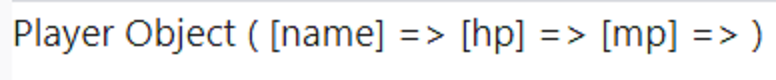 <?php class Player { //クラスを宣言 public $name; //「name」変数を宣言 public $hp; //「hp」変数を宣言 public $mp; //「mp」変数を宣言 public function __construct($name , $hp , $mp){ //コンストラクタ(インスタンス化した際の初期値入力設定) $this->name = $name; //作成するオブジェクトの「name」項目に変数「$a」を代入する $this->hp = $hp; //作成するオブジェクトの「hp」項目に変数「$b」を代入する $this->mp = $mp; //作成するオブジェクトの「name」項目に変数「$c」を代入する } } $tanaka = new Player("tanaka" , 50 , 20); //「Player」クラスから「$tanaka」オブジェクトを作成し、各項目に初期値を設定する $suzuki = new Player("suzuki" , 75 , 5); //「Player」クラスから「$suzuki」オブジェクトを作成し、各項目に初期値を設定する print_r($tanaka); //確認用 print_r($suzuki); //確認用 ?> |