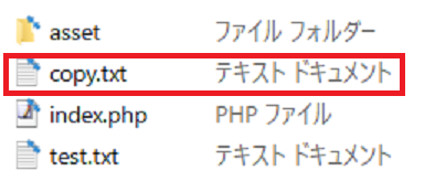 <?php //copy(コピーしたいファイル , コピー先のファイル名); copy("test.txt" , "copy.txt"); //「"test.txt"」を「"copy.txt"」としてコピーする ?> |