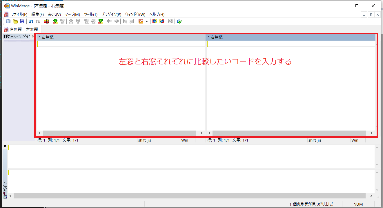 上の様な画面が現れますので、比較したいコードを左枠と右枠それぞれに貼り付けます