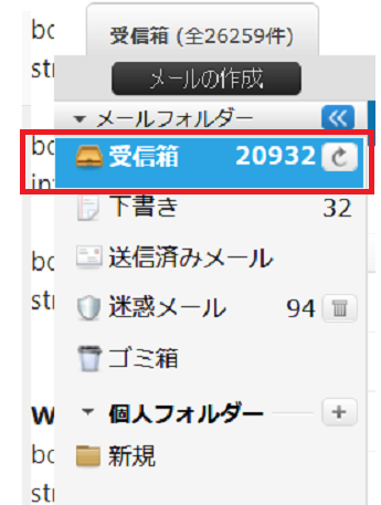 まずは「yahooメール」の「受信箱」にカーソルを合わせて「右クリック」します。
